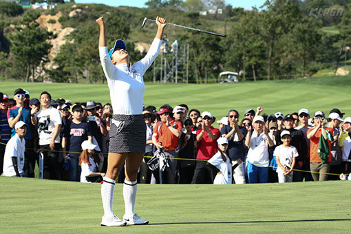 우승 직후 두 팔을 활짝 벌려 기쁨을 표현한 고진영은 “18번 홀 파 퍼트가 들어가지 않는 줄 알고 조마조마했다”며 큰 숨을 내쉰 뒤 “지난해 우승을 차지하기도 했고, 개인적으로 좋아하는 대회여서 꼭 우승하고 싶었다. 챔피언 타이틀을 방어해 정말 기쁘다”고 소감을 전했다.