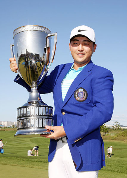 캐나다 동포선수 리차드 리가 부모님의 나라에서 우승컵을 들어올렸다. 9월 17일 인천 베어즈베스트 청라 골프클럽에서 열린 KPGA 코리안투어 신한동해오픈에서 역전우승을 이뤄냈다. 사진제공 | 신한금융그룹