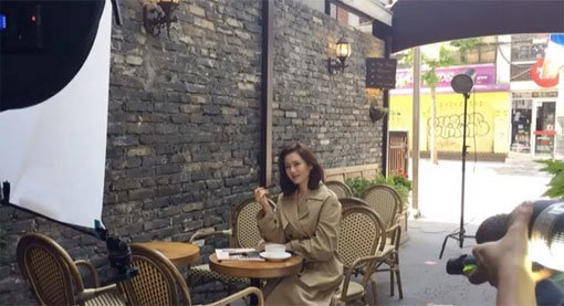 사진 속 손예진은 트렌치 코트를 입고 화보 촬영을 하고 있다. 멀리서 봐도 시선을 모으는 손예진의 모습이 인상적이다.