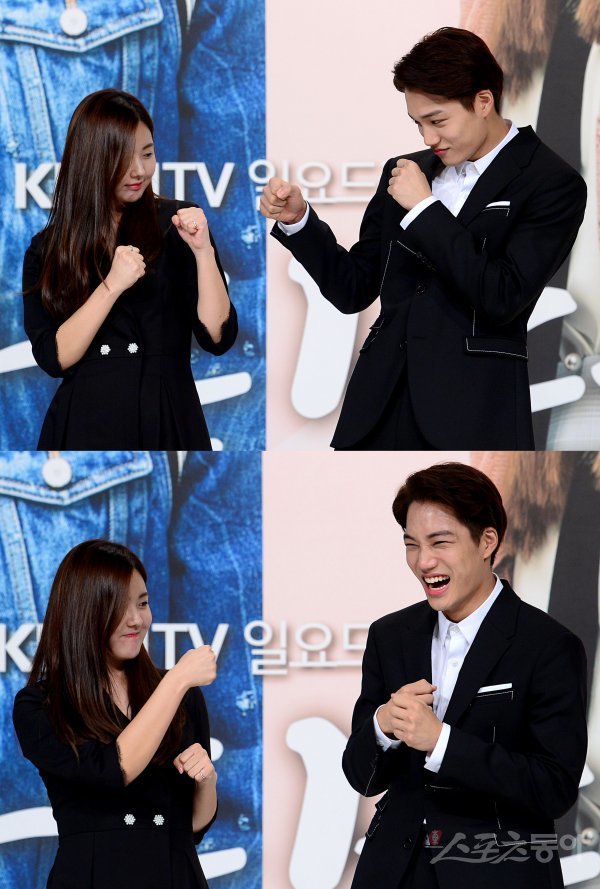배우 이예현과 엑소 카이(오른쪽)가 19일 서울 영등포 타임스퀘어 내 아모리스홀에서 열린 KBS1TV 일요드라마 ‘안단테’ 제작발표회에서 포토타임을 가지고 있다.