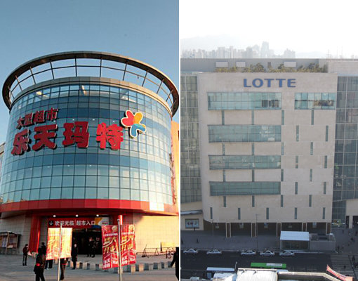 중국 롯데마트 매장(왼쪽)과 롯데백화점 서울 영등포점 외부 전경. 어려운 상황에서도 중국시장 고수를 밝혀온 롯데는 최근 롯데마트 중국매장 매각 절차를 진행하고 있다. 유통분야의 대표적인 알짜 매장인 롯데백화점 서울 영등포점과 롯데마트 서울역점도 올해 말 민자역사 점용허가 기간 만료로 문을 닫을 위기에 처했다. 사진제공|롯데마트·롯데백화점