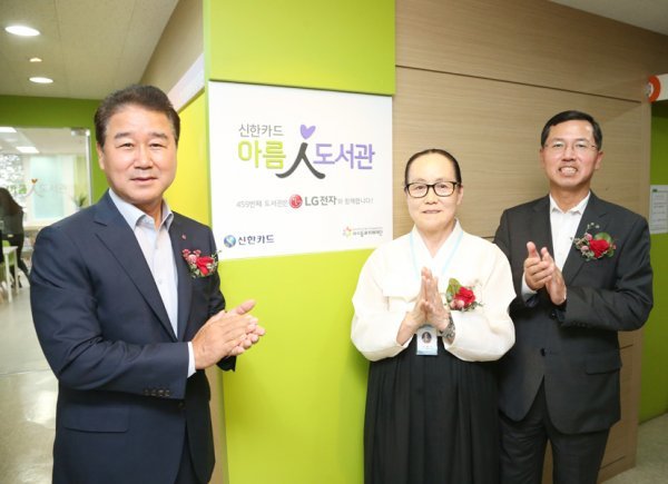 임영진 신한카드 사장은 “LG전자와 함께 아름인 도서관 건립을 지원하고 따뜻한 금융을 실천하게 됐다”며 “지역사회와 기업, 기업과 기업간 상생의 선순환을 이끌어내는 아름인 도서관 사업을 더욱 확대할 것”이라고 했다.