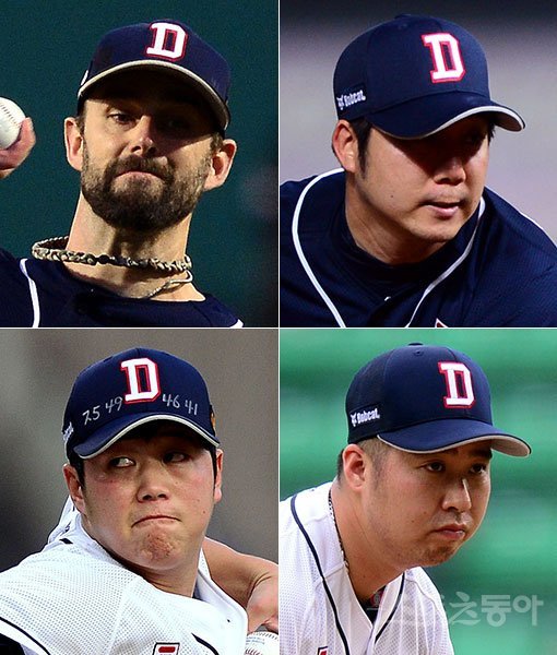 두산 니퍼트-장원준-유희관-함덕주(왼쪽 상단부터 시계방향으로). 스포츠동아DB
