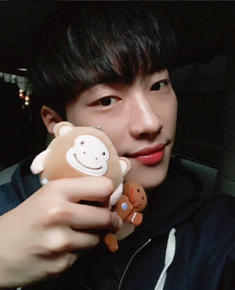 사진 속 우도환은 원숭이와 쿠키 인형을 손에 꼭 쥔 채 셀카를 찍는 모습. 평소 카리스마 넘치는 ‘상남자’이미지와 사뭇 다른 귀여운 느낌.