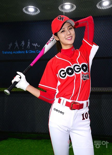 프로야구 롯데자이언츠 치어리더 박기량이 ‘진짜’ 야구에 빠졌다. 여자 연예인야구단 고고스프레밀리의 유니폼을 차려입은 박기량이 자신의 분홍색 배트를 들고 멋진 자태를 뽐내고 있다. 김종원 기자 won@donga.com