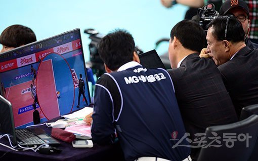 게다가 비디오판독은 경기의 흐름을 끊는다는 치명적 폐해도 안고 있다. 이 마당에 KOVO와 구단 들은 동일 랠리에서 비디오판독을 팀이 서로 할 수 있는 ‘추가판독’까지 허용해 놨다. 쉽게 말해 한 팀이 블로킹 터치아웃으로 판독을 걸어서 오심을 따내면, 상대 팀이 스파이크 인-아웃으로 판독을 신청해 다시 엎을 수 있도록 해놓은 것이다. 판독이 감독끼리의 신경전 도구로 변질되기 딱 좋은 환경이다.