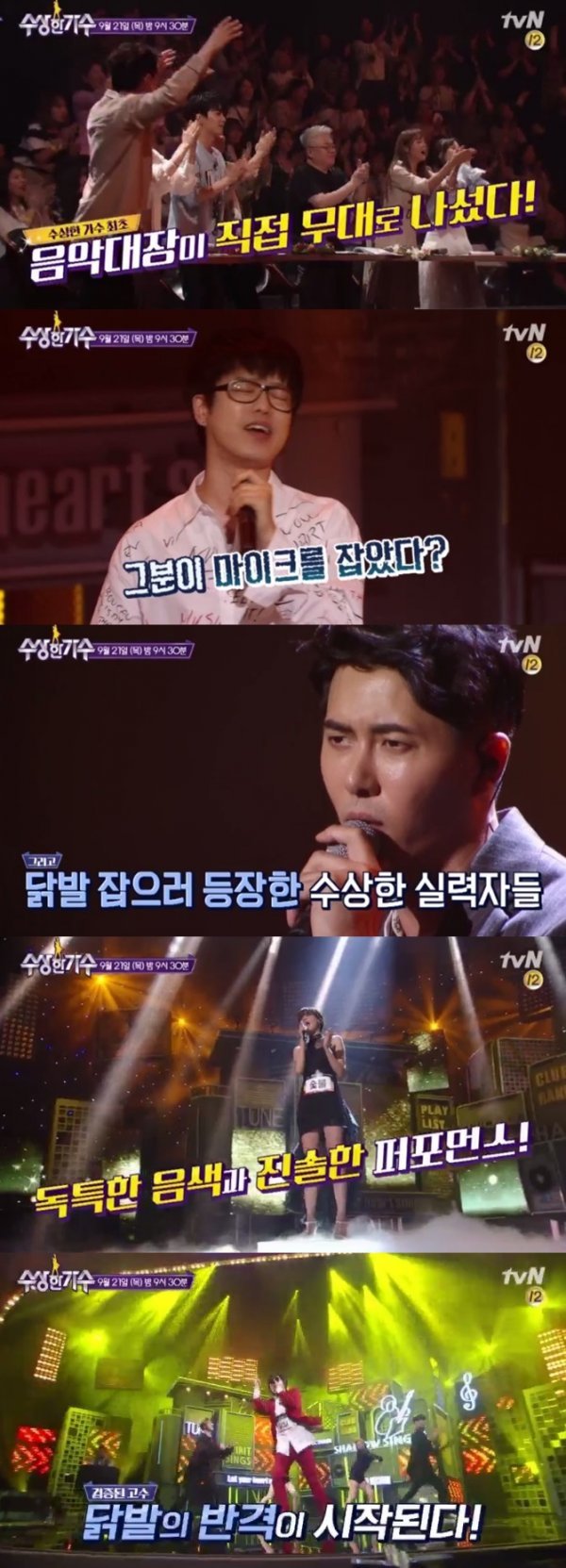 한편, 매주 실력자들의 무대로 화제가 되고 있는 \'수상한 가수\'는 4연속 우승에 성공한 닭발을 꺾을 도전자가 나올 수 있을지 기대가 모아진다. 닭발이 이번에도 우승할 경우, 5연속 우승으로 \'수상한 가수\' 최초 \'명예졸업\'을 하게 된다. 5연속 우승에 도전한 닭발은 그 동안 잔잔하고 호소력 짙은 무대를 보여줬던 지난 경연들과는 달리 색다른 무대를 보여줘 또 한번 파장을 일으킬 예정이다.