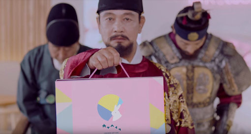 영상은 장엄한 음악과 함께 조선시대 왕의 행차로 시작된다. 근엄한 얼굴로 가마에 앉아 있던 왕이 “내 가족들에게 추석선물을 해야겠다. 세워 보거라”라고 명령한다. “주상전하 납시오”하며 왕이 신하들과 들어선 곳은 황당하게도 배스킨라빈스!