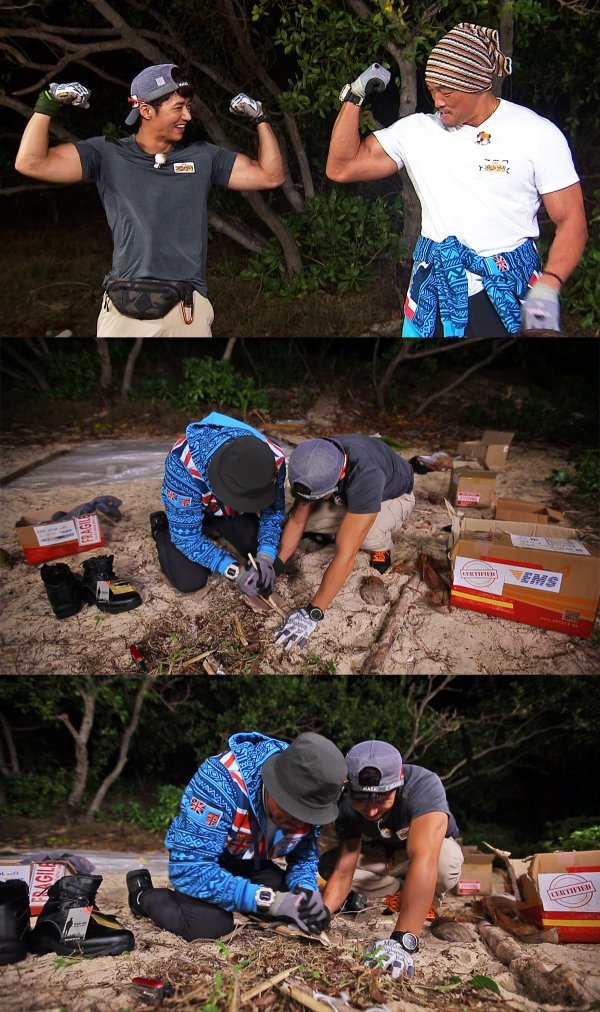 추성훈과 오종혁은 과거의 명성대로 생존 첫날부터 불 담당을 자처하며, 그동안 쌓아온 노하우를 바탕으로 불 피우기에 도전했다. 하지만 아무리 베테랑이라도 도구 없이 제대로 불을 피우기는 쉽지 않을 터. 생존 초반부터 불과의 고군분투가 시작됐다.
