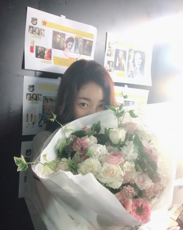 배우 김사랑이 꽃다발을 한가득 안은 인증샷을 공개했다.