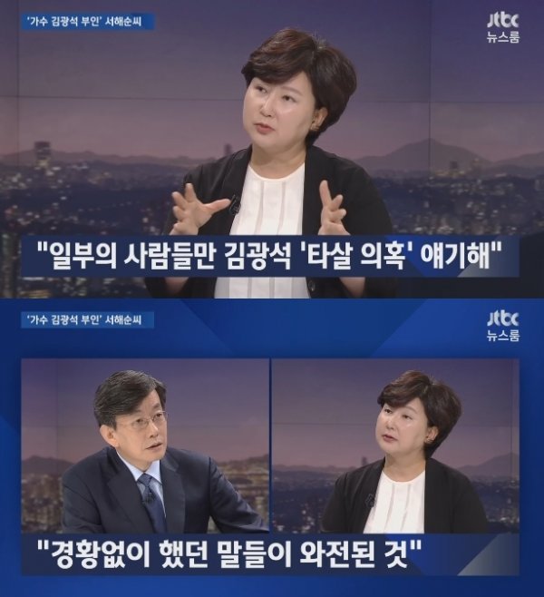 서해순 씨는 25일 오후 방송된 JTBC \'뉴스룸\'에 출연해 최근 불거진 외동 딸 서연 양 사망과 관련한 의혹은 물론 과거 남편 김광석의 자살에 대해 언급했다.