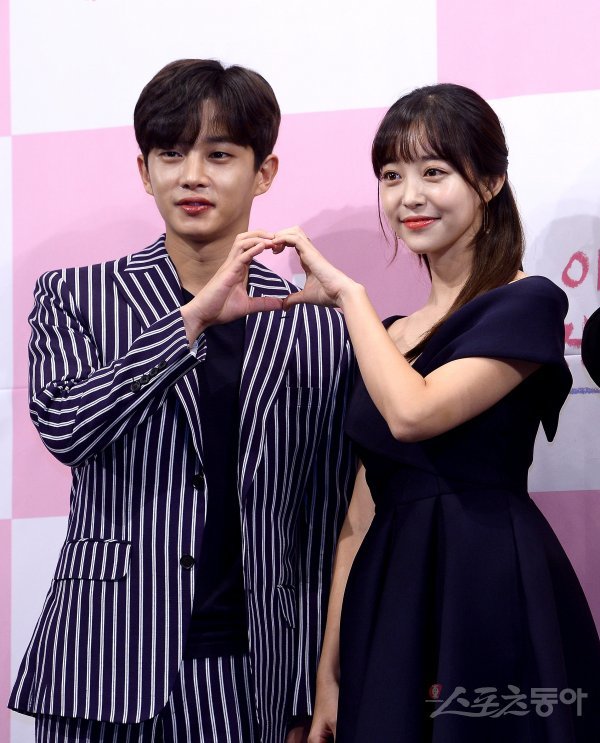 배우 김민석과 김가은(오른쪽)이 26일 서울 강남구 논현동 임피리얼 팰리스 서울에서 열린 tvN 월화드라마 ‘이번 생은 처음이라’ 제작발표회에서 포즈를 취하고 있다.