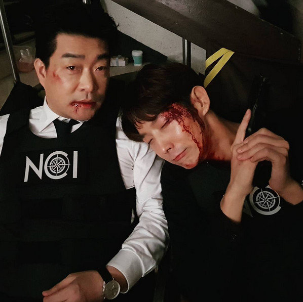 사진 속 손현주는 입가에 핏자국과 멍자국이 남아있어 궁금증을 자아낸다. 이준기는 옆에서 피를 철철 흘리는 분장을 하고 익살스런 표정을 짓고 있어 눈길을 끈다.