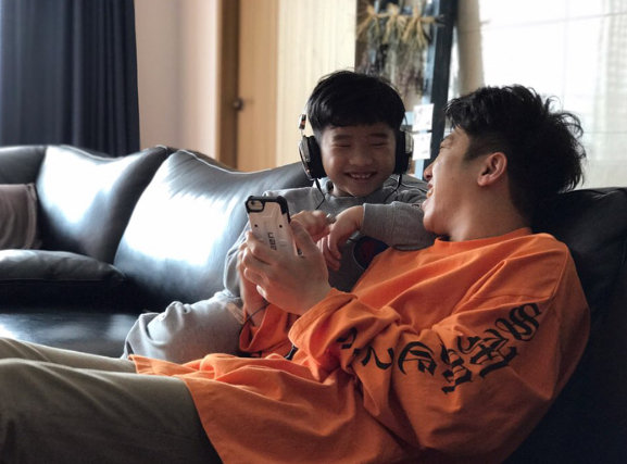공개된 사진 속 유세윤은 소파에서 꼭 닮은 ‘붕어빵’ 아들과 함께 즐거운 한때를 보내는 모습. 핸드폰을 보고 함께 마주보며 활짝 웃는 모습이 훈훈한 분위기를 자아냈다.