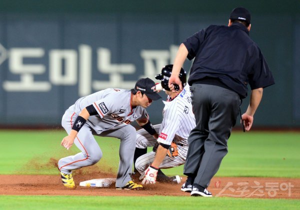 26일 부산 사직야구장에서 ‘2017 타이어뱅크 KBO리그’ 롯데 자이언츠와 한화 이글스의 경기가 열렸다. 1회말 무사 1루에서 롯데 손아섭 타석 때 1루 주자 전준우가 2루 도루에 성공하고 있다.