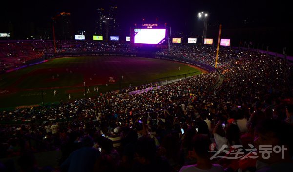26일 부산 사직야구장에서 ‘2017 타이어뱅크 KBO리그’ 롯데 자이언츠와 한화 이글스의 경기가 열렸다. 롯데 야구팬들이 열정적인 응원을 펼치고 있다. 이날 전까지 홈 관중 996,267명을 기록 중이던 롯데는 이날 시즌 100만 관중을 달성했다.