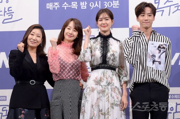 배우 라미란과 명세빈, 이요원, 이준영(왼쪽부터)이 27일 서울 강남구 논현동 임피리얼 팰리스 서울에서 열린 tvN 수목드라마 ‘부암동 복수자들’ 제작발표회에서 포즈를 취하고 있다.