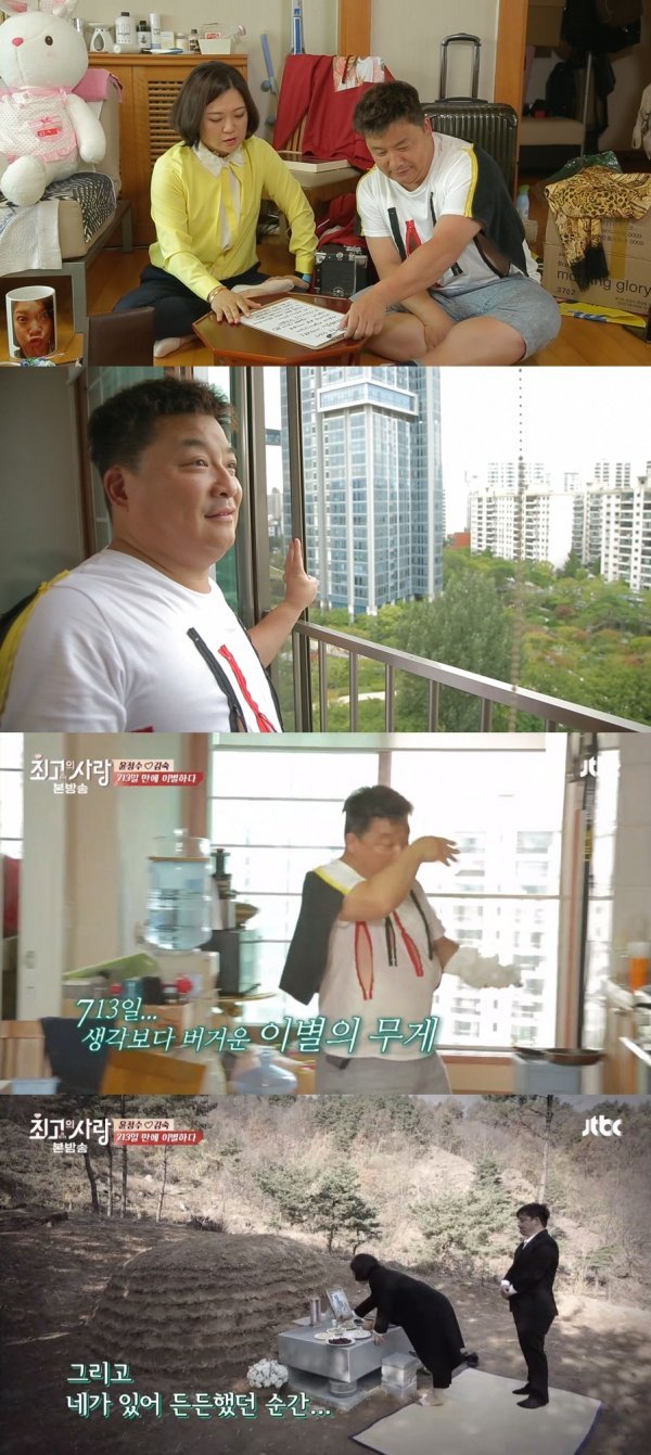 윤정수는 마지막으로 김숙을 베란다에서 배웅하며 참았던 눈물을 쏟았다. 김숙이 떠난 뒤 윤정수는 괜히 설거지를 하거나 주방을 서성이며 애써 감정을 다스리는 모습을 보여 슬픔을 자아냈다. 마지막 에필로그에서 두 사람은 “밝고 즐거운 모습으로 웃음 드리며 헤어지고 싶었는데, 오랜 시간 함께 한 만큼 아쉬운 마음이 크다”며, “그동안 많은 사랑을 주셔서 정말 감사하다”고 시청자를 향해 인사했다.