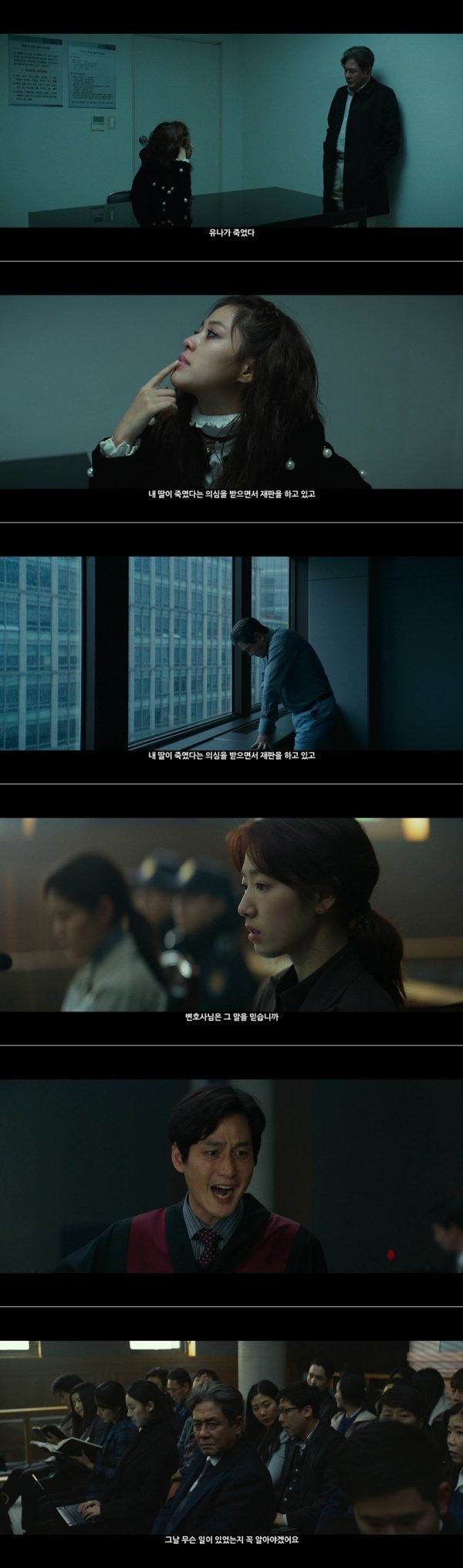이번에 공개된 티저 예고편은 자신의 딸을 향해 “유나가 죽었다”라며 약혼녀의 죽음을 전하는 ‘임태산’ 역 최민식의 의미심장한 대사로 시작부터 궁금증을 자극한다. 이어 ‘살해된 약혼녀, 용의자가 된 딸’ 이라는 카피가 등장, 약혼녀가 죽고 용의자가 된 딸이 재판을 받게 되는 믿을 수 없는 상황에 놓인 임태산이 모든 걸 잃을 위기 앞에 혼란스러워하는 모습이 펼쳐지며 긴장감을 끌어올린다. ‘모두가 알고 있는 진실, 모두가 믿고 있는 거짓’이라는 카피에 혼돈에 빠진 인물들의 모습이 쉴 새 없이 이어지며 잠시도 눈 뗄 수 없는 강렬함을 더하는 ‘침묵’ 티저 예고편.