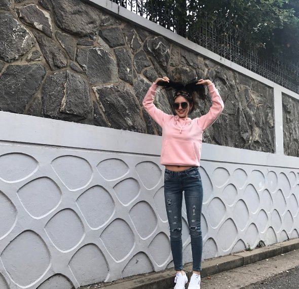 공개된 사진 속 소미는 분홍색 후드티에 청바지를 매치했다. 흰 스니커즈로 포인트도 잊지 않았다. 긴 머리를 위로 잡아 당기며 귀여운 면모를 드러냈다.