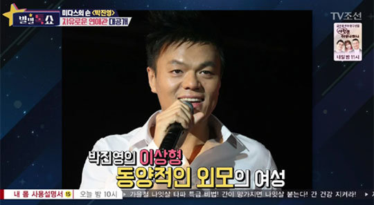 29일 오후 방송된 종합편성채널 TV조선 \'별별톡쇼\'에서 연예부기자는 "박진영이 20살 때 지인 소개로 만난 서 씨에게 첫눈에 반해 1999년 6월 결혼에 성공했다. 그런데 2009년에 이혼 소식이 전해졌다"고 운을 뗐다.