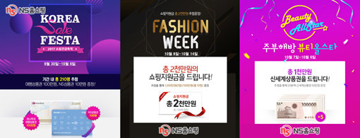 우선 6일까지 ‘코리아세일페스타’를 연다. TV, 인터넷, 모바일, 카탈로그, 연동형TCOM, NS샵플러스 등 NS홈쇼핑 전 매체 구매 및 상담 예약 고객을 대상으로 총 3000만원 상당의 경품을 내걸었다. 1등 10명에게 ‘하나투어 여행상품권 100만원’, 2등 200명에게 ‘NS상품권 10만원’을 준다.