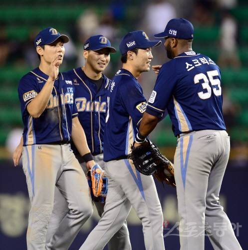 이날 NC는 적극적인 주루를 통해 공격의 활로를 뚫었다. 역대 준PO 팀 최다도루(3개)를 기록한 것은 물론 선취점도 과감한 주루로 만들어냈다. 1회초 2사 3루에서 상대 폭투를 틈타 3루 주자 박민우가 홈을 파고들었는데, 비디오판독 끝에 NC의 득점이 인정됐다. 4회초에는 2사 후 모창민의 안타와 도루, 박석민의 볼넷으로 만든 1·2루 기회에서 권희동의 우전 적시타로 2-0을 만들었다.
