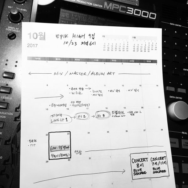 에픽하이의 타블로, 미쓰라, 투컷은 지난 10일 각자 개인 SNS를 통해 새 앨범 ‘\'WE\'VE DONE SOMETHING WONDERFUL\' 컴백 플랜을 손수 적은 작업실 달력 사진을 공개했다. 일반적인 기획사의 공식 발표가 아닌 아티스트가 직접 팬들과 소통하는 DIY (Do It Yourself) 홍보라서 더욱 눈길을 끈다.