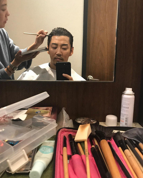 사진 속에는 분장을 받고 있는 윤계상이 카리스마 있는 표정을 짓고 있어 눈길을 끈다.