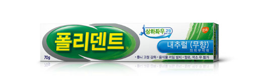 폴리덴트 의치부착재는 틀니의 덜그럭거림 개선과 안정감을 향상시킨다. 틀니와 잇몸 사이로 유입되는 음식물 방지에 도움을 주며, 틀니와 잇몸사이의 자극감 및 통증을 감소시켜 음식을 씹는데 편안함과 만족도를 향상시키는데 도움을 준다.