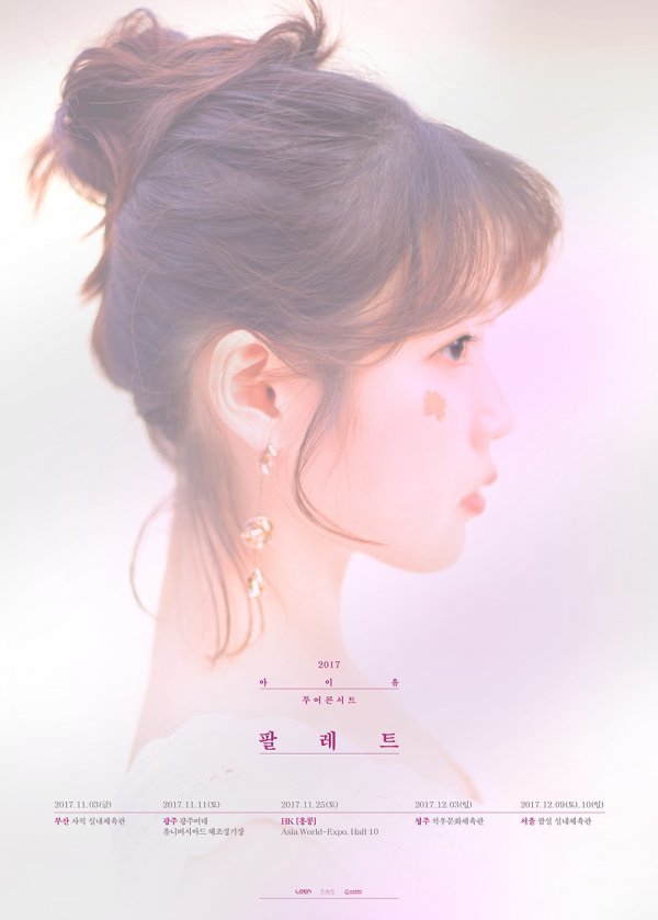 아이유 소속사 페이브엔터테인먼트는 "아이유 ‘2017 투어콘서트-팔레트’의 포문을 열게 될 부산 공연(11월3일 사직실내체육관)의 티켓 예매를 11일 밤 8시 온라인사이트 \'멜론티켓\'에서 팬클럽 선예매를 시작으로 개시한다"며 이 같이 밝혔다. 일반 예매는 13일로 예정됐다.