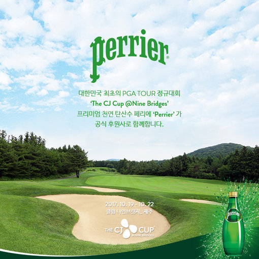 프랑스 프리미엄 천연 탄산수 페리에가 19일부터 22일까지 제주도 나인 브릿지에서 열리는 PGA투어 ‘The CJ Cup’에 공식 후원 브랜드로 참여한다. 페리에는 투어 기간 중 갤러리 엑스포 존에 페리에 브랜드 부스를 마련해 페리에 그린애플 제품을 제공하고 브랜드의 다양한 영상을 선보이게 된다. 페리에 공식 수입원 ㈜CUC의 마케팅 관계자는 “젊은 층을 대상으로 탄산수 문화를 선도해 온 페리에는 앞으로도 다양한 분야에서의 마케팅 활동을 해 지속적으로 고객들과 소통할 것”이라고 말했다.