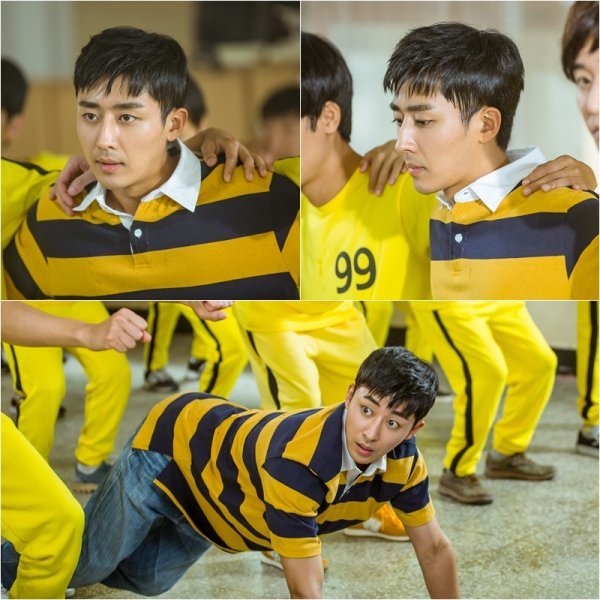 그런가 하면 손호준은 주변의 노란색 추리닝을 입은 동기들 속에서 홀로 줄무늬 옷을 입고 있어 호기심을 자극한다. 이에 더해 혼자서만 양 손과 발을 땅에 댄 채 엉덩이를 높게 들고 엎드려뻗쳐를 하고 있는 모습이 포착돼 궁금증을 폭발시킨다. 또한 무언가를 보고 놀란 듯이 ‘토끼눈’을 뜨고 있는 손호준의 모습은 앞으로 손호준에게 어떤 일이 펼쳐질 지 기대를 모은다.