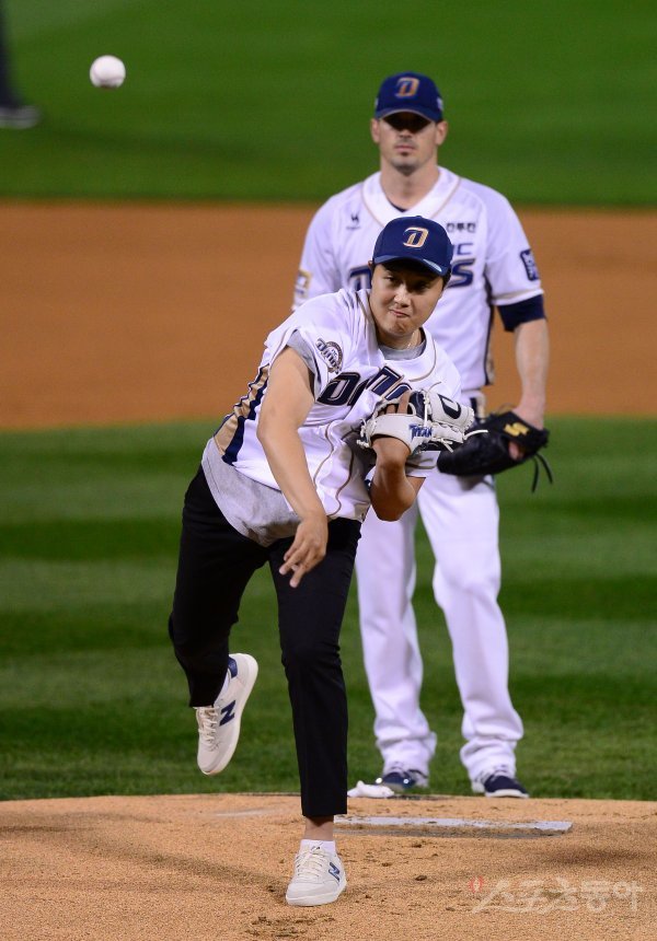 11일 창원 마산야구장에서 ‘2017 타이어뱅크 KBO리그’ 포스트시즌 준플레이오프 3차전 롯데 자이언츠와 NC 다이노스 경기가 열렸다. 경기 전 마산 용마고 노시훈 투수가 시구를 하고 있다.