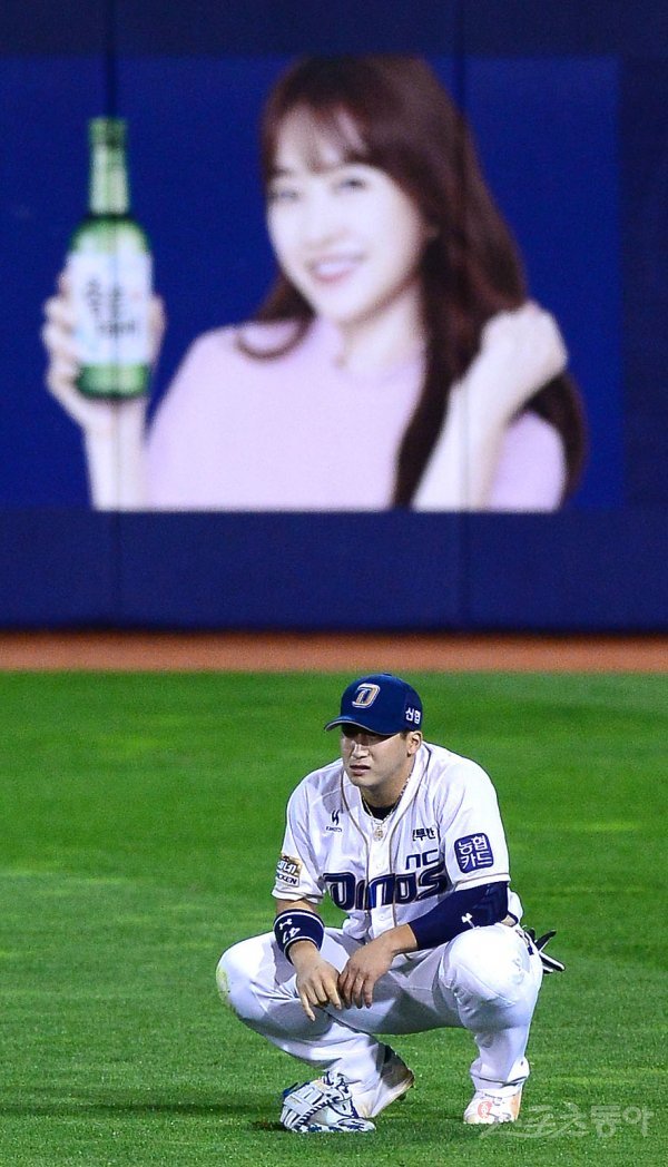 11일 창원 마산야구장에서 ‘2017 타이어뱅크 KBO리그’ 포스트시즌 준플레이오프 3차전 롯데 자이언츠와 NC 다이노스 경기가 열렸다. 6회초 1사 1,2루 NC 우익수 나성범이 롯데 이대호의 타구를 잡으려 했으나 놓친 후 아쉬워하고 있다.