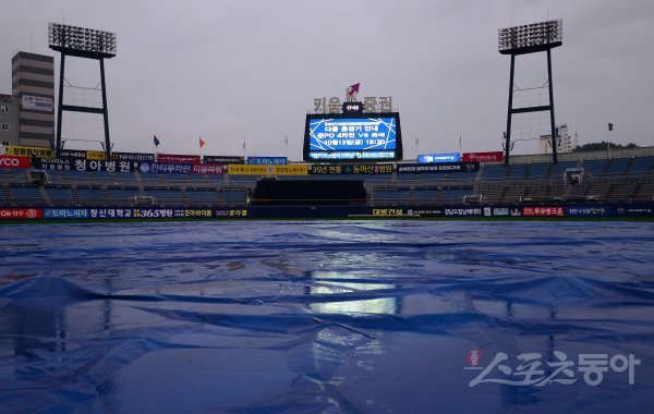 12일 창원 마산야구장에서 열릴 ‘2017 타이어뱅크 KBO리그’ 포스트시즌 준플레이오프 4차전 롯데 자이언츠와 NC 다이노스 경기가 우천으로 취소됐다.