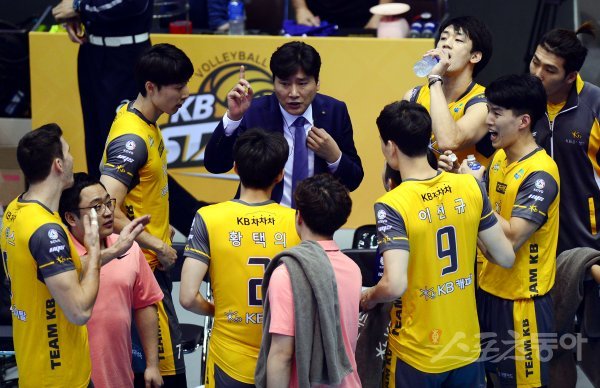 15일 경기도 의정부체육관에서 ‘2017-2018 도드람 V리그’ 의정부 KB손해보험과 대전 삼성화재의 경기가 열렸다. KB손해보험 권순찬 감독이 선수들에게 작전을 지시하고 있다.