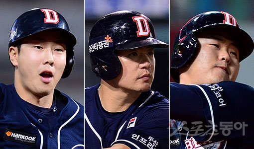 두산 박건우-김재환-오재일(왼쪽부터). 스포츠동아DB