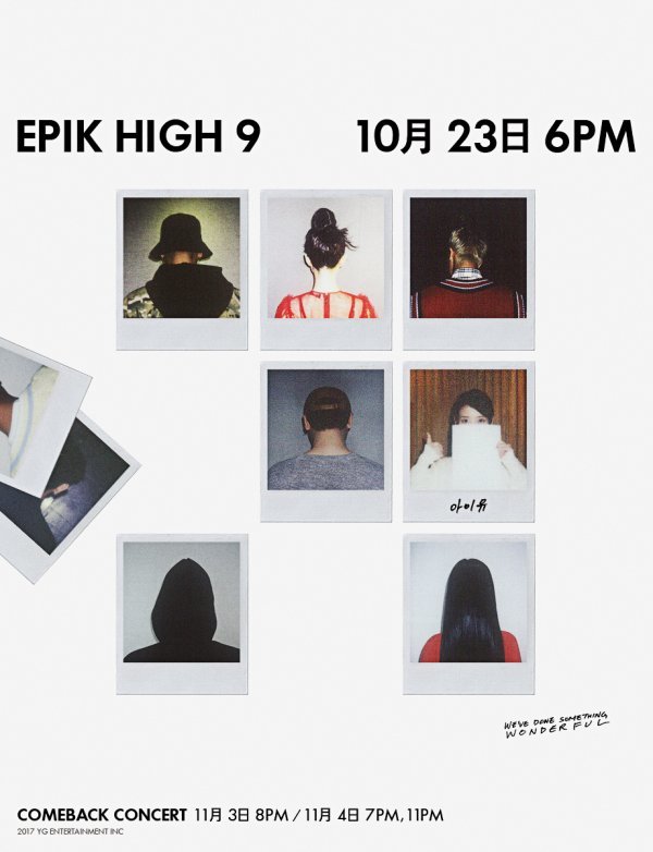 에픽하이는 23일 오후 6시 새 앨범 'WE'VE DONE SOMETHING WONDERFUL'을 공개한다. 이어서 11월 3일과 4일 양일간 3회 규모로 개최되는 단독 콘서트를 통해 팬들과 호흡한다.