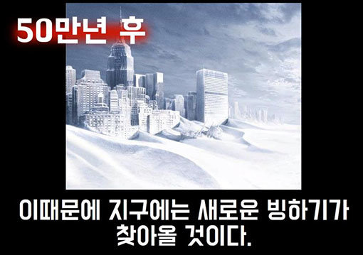 1만3천년 후에는 지구의 자전축 기울기가 지금과 반대로 기울어진다. 북반구는 더위와 추위만 있는 극단적인 기후로 변한다.