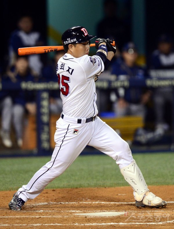 17일 서울 잠실야구장에서 ‘2017 타이어뱅크 KBO리그’ 두산 베어스와 NC 다이노스의 플레이오프 1차전 경기가 열렸다. 4회말 무사 만루에서 두산 양의지가 1타점 동점 적시타를 날리고 있다.