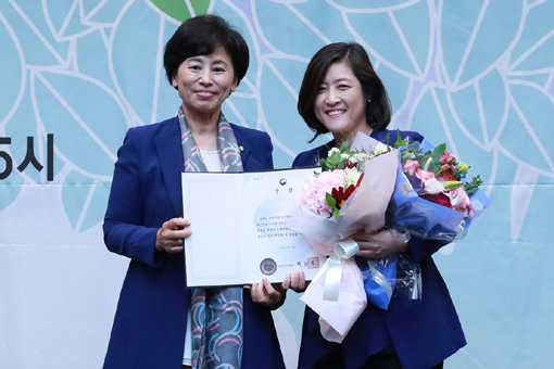 서울재활병원 이지선 원장(오른쪽)이 남인순 국회의원과 수상 기념촬영을 하고 있다. 사진제공|서울재활병원