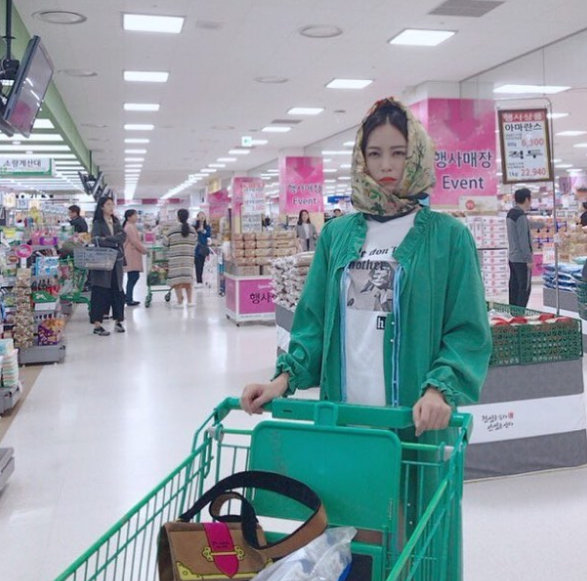사진 속 한예슬은 마트에서 카트를 끌고 있는 모습. 얼굴 전체를 보자기로 둘둘 싸매고 뾰루퉁한 표정을 짓는 모습이 궁금증을 불러 일으켰다.