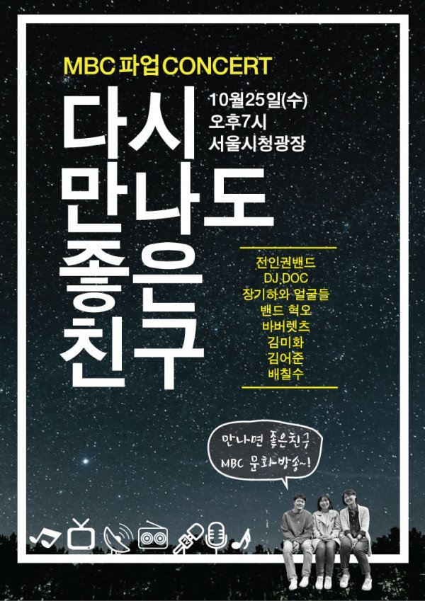MBC 파업콘서트 ‘다시 만나도 좋은 친구’는 별도의 티켓 없이 모든 시민이 25일 저녁7시 서울시청 광장에서 함께할 수 있다.