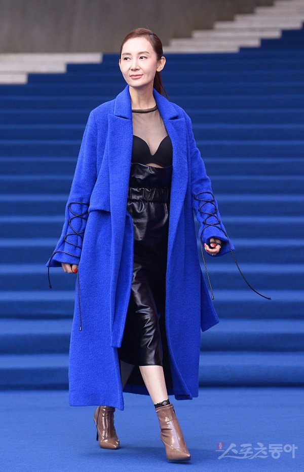 배우 채시라가 19일 서울 중구 DDP(동대문디자인플라자)에서 열린 2018 헤라 서울패션위크 ‘NOHKE(노케)’ 콜렉션 패션쇼에 참가해 블루카펫을 밟고 있다.