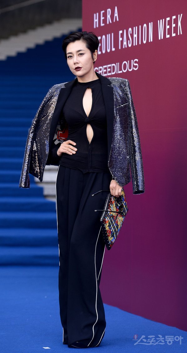 가수 춘자가 19일 서울 중구 DDP(동대문디자인플라자)에서 열린 2018 헤라 서울패션위크 ‘GREEDILOUS(그리디어스)’ 콜렉션 패션쇼에 참가해 포즈를 취하고 있다.