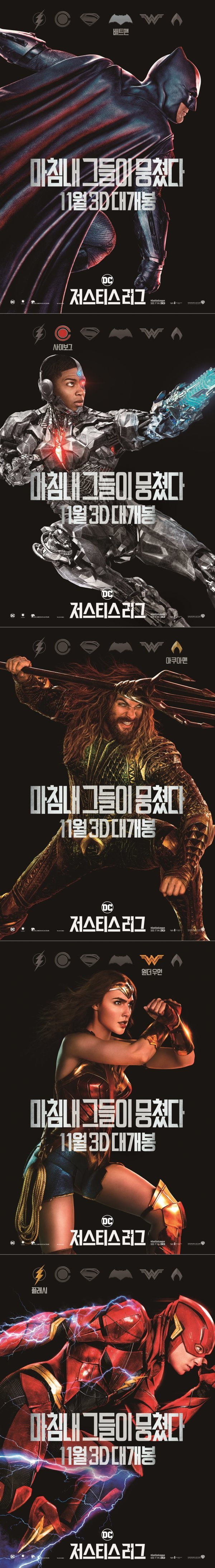 11월 개봉을 앞둔 영화 ‘저스티스 리그’의 캐릭터 포스터가 공개되었다. 공개된 캐릭터 포스터는 각 캐릭터들의 특징을 살린 역동적인 모습을 통해 최강 슈퍼히어로 완전체로서의 면모를 유감 없이 보여줘 영화를 더욱 기대하게 만든다.