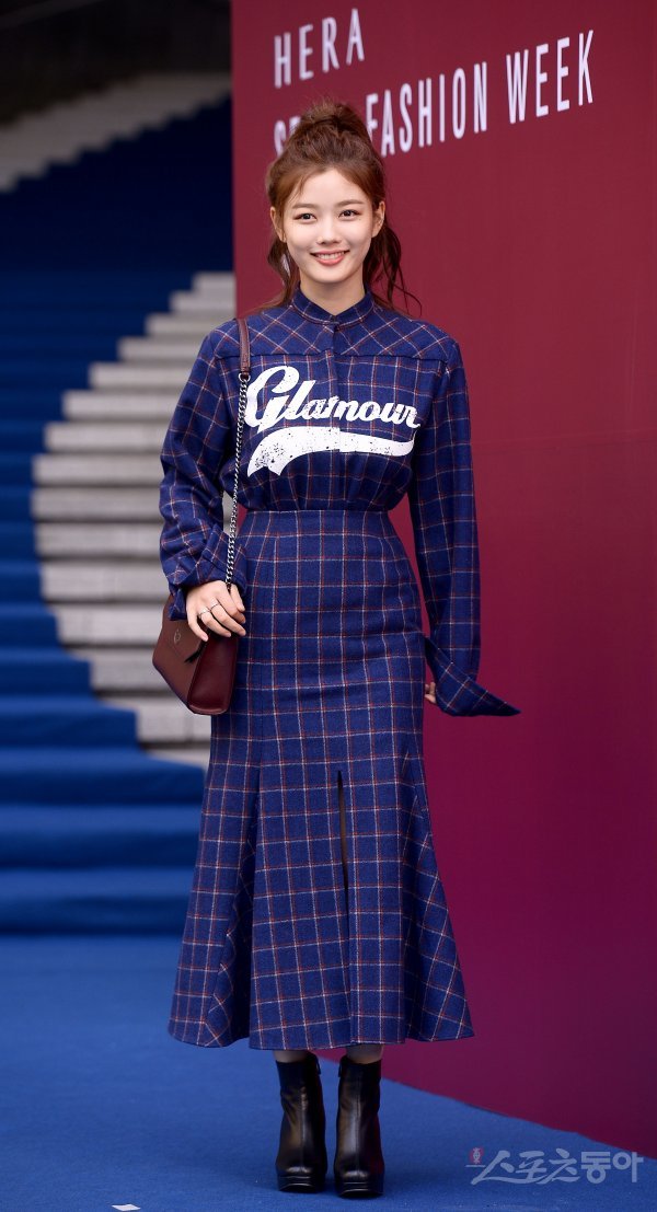 배우 김유정이 19일 서울 중구 DDP(동대문디자인플라자)에서 열린 2018 헤라 서울패션위크 ‘와이씨에이치(YCH)’ 콜렉션 패션쇼에 참가해 포즈를 취하고 있다.