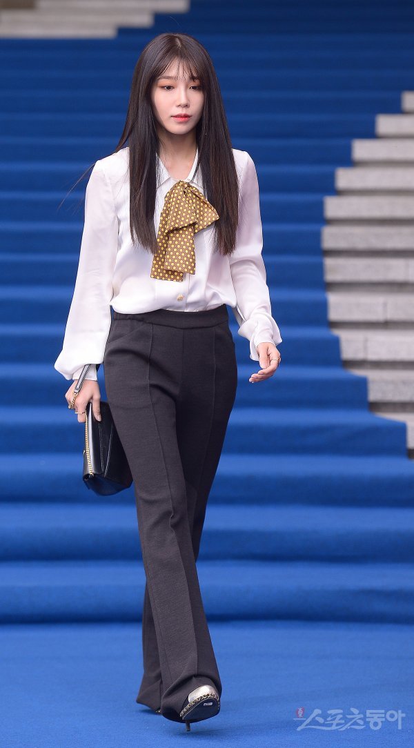 에이핑크 정은지가 20일 서울 중구 DDP(동대문디자인플라자)에서 열린 2018 헤라 서울패션위크 ‘미스지’ 콜렉션 패션쇼에 참가해 블루카펫을 밟고 있다.