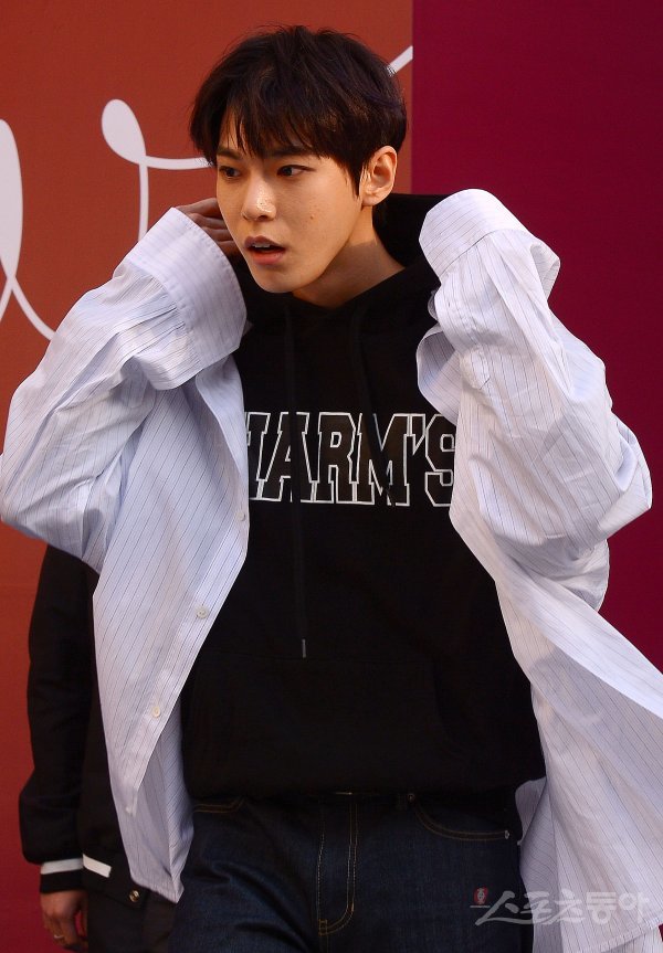 그룹 NCT 도영이 20일 서울 중구 DDP(동대문디자인플라자)에서 열린 2018 헤라 서울패션위크 ‘Charm’s(참스)‘ 콜렉션 패션쇼에 참가해 포즈를 취하고 있다.